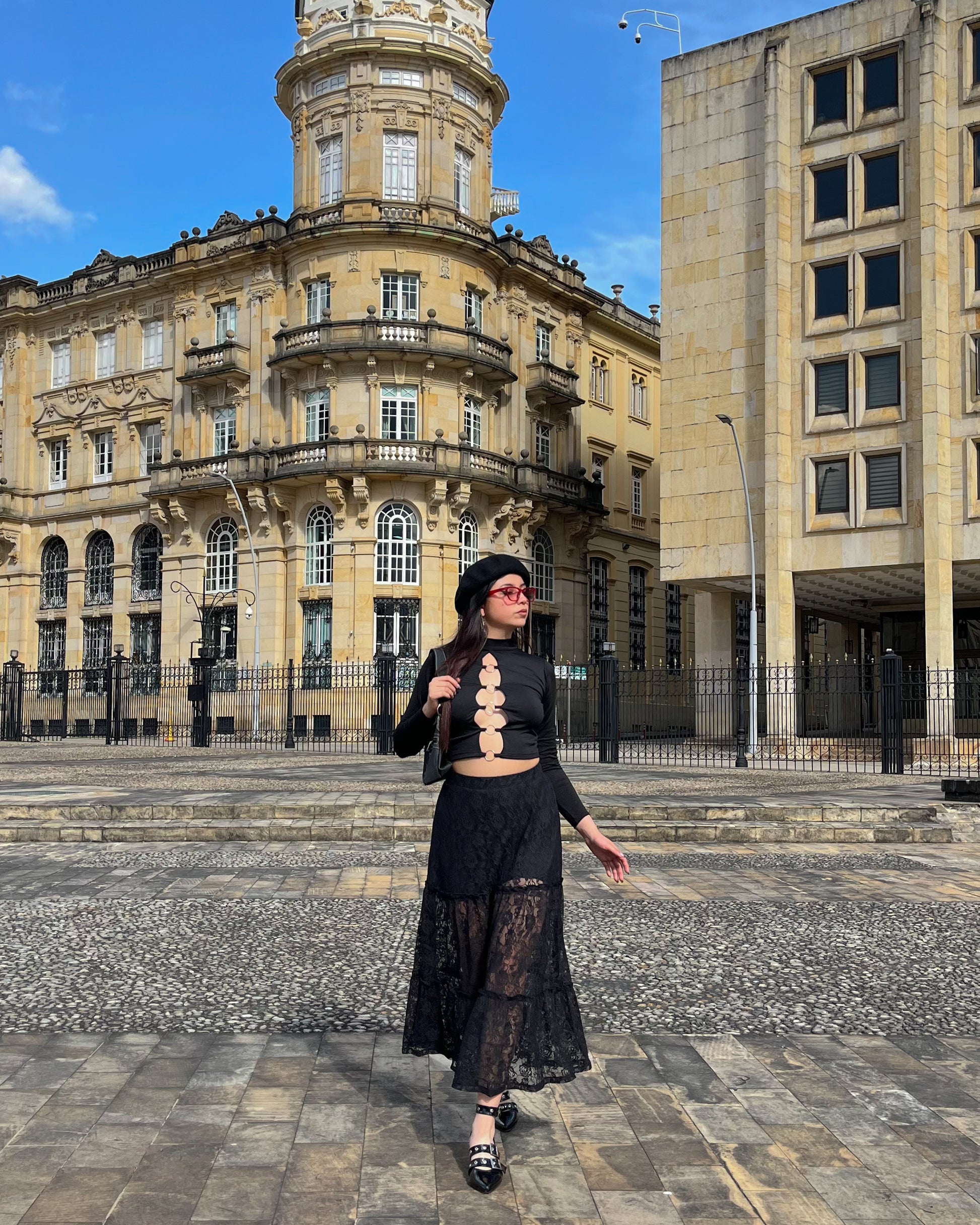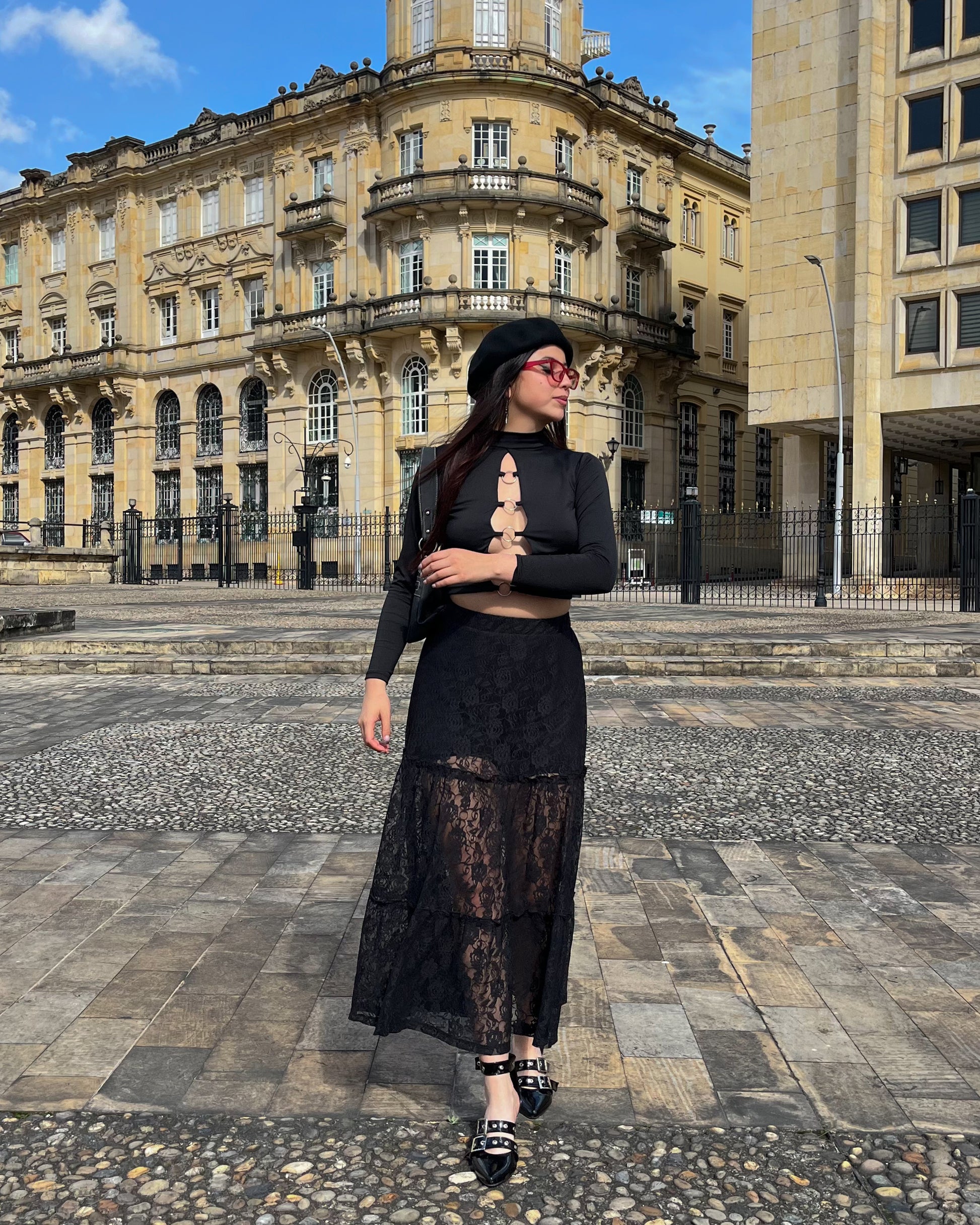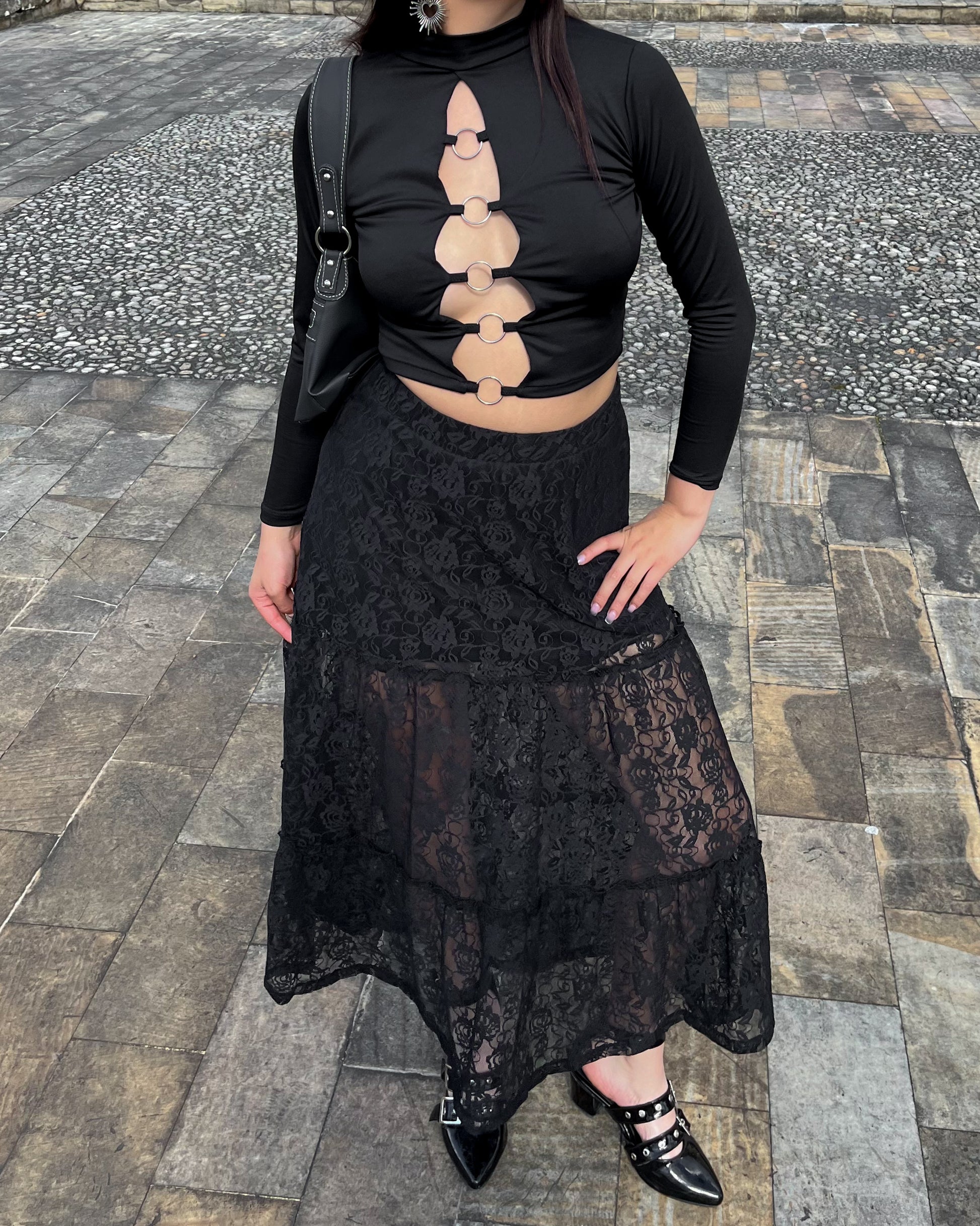 Falda blonda negra