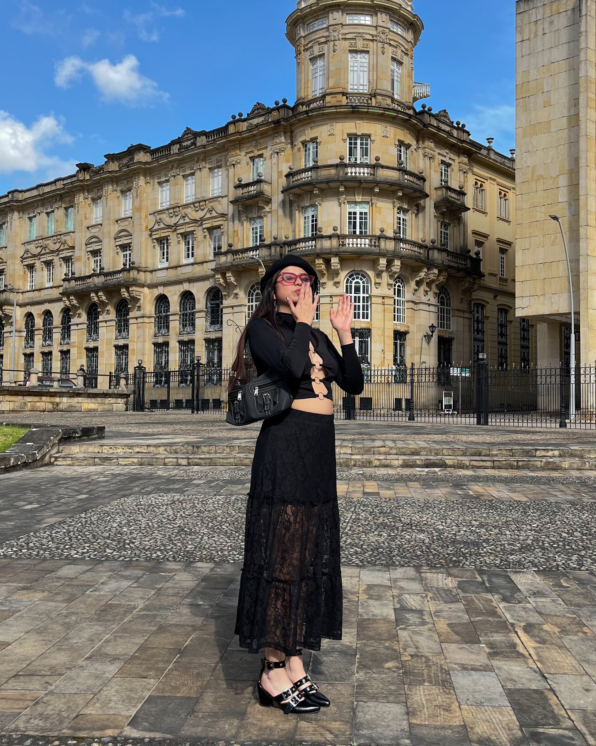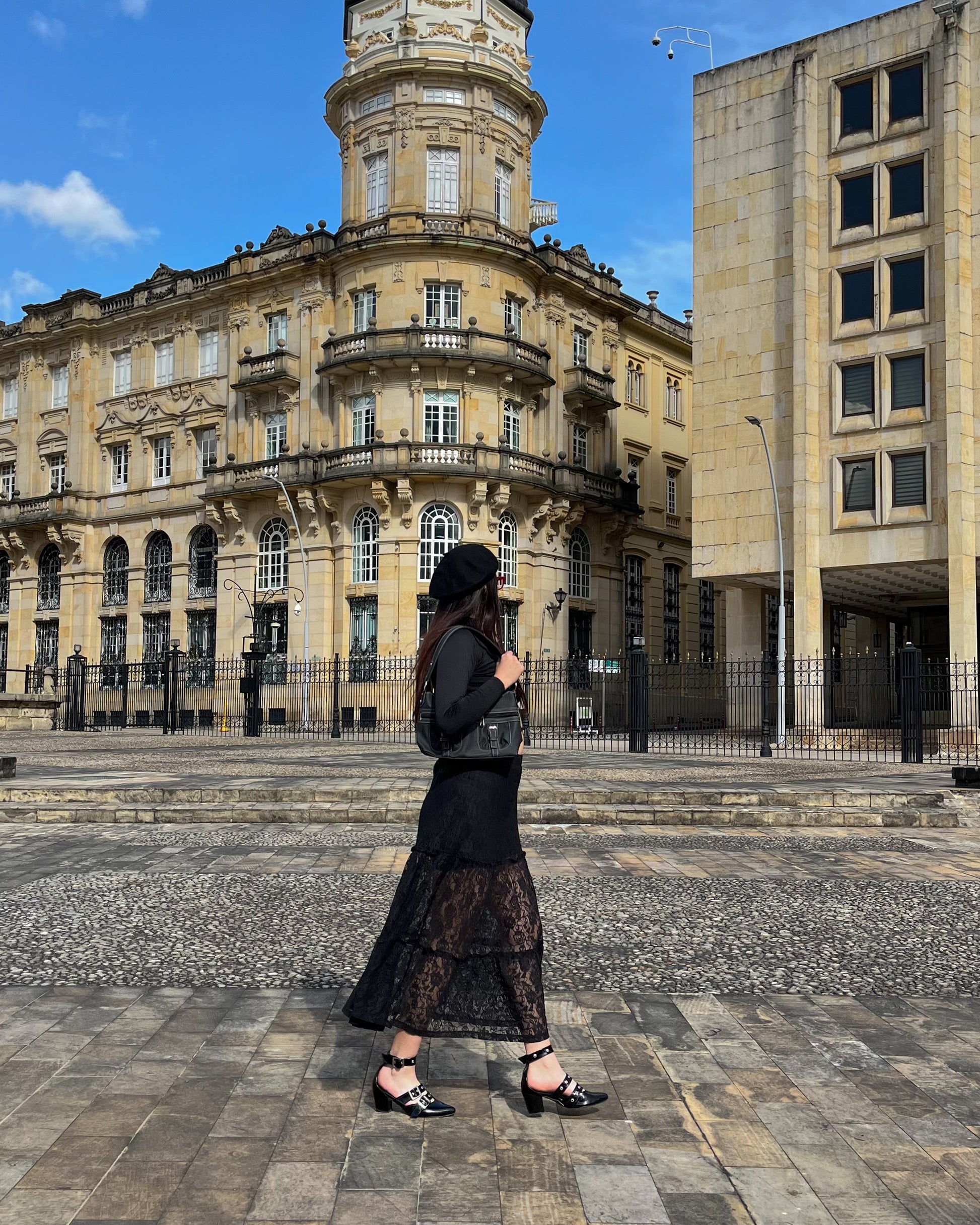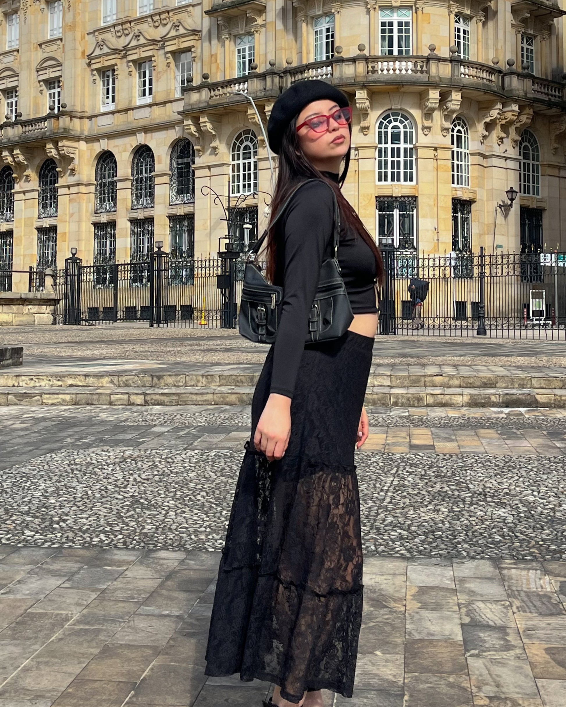 Falda blonda negra