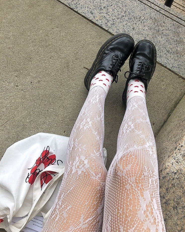 Medias de red (malla) FLORAL blancas