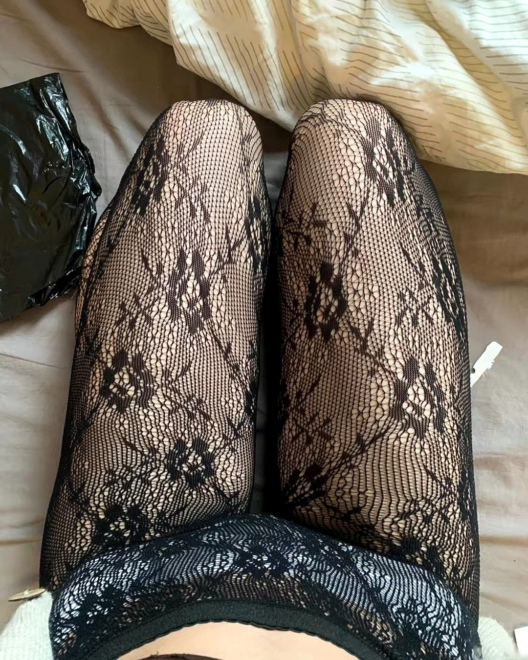 Medias de red (malla) FLORAL negras